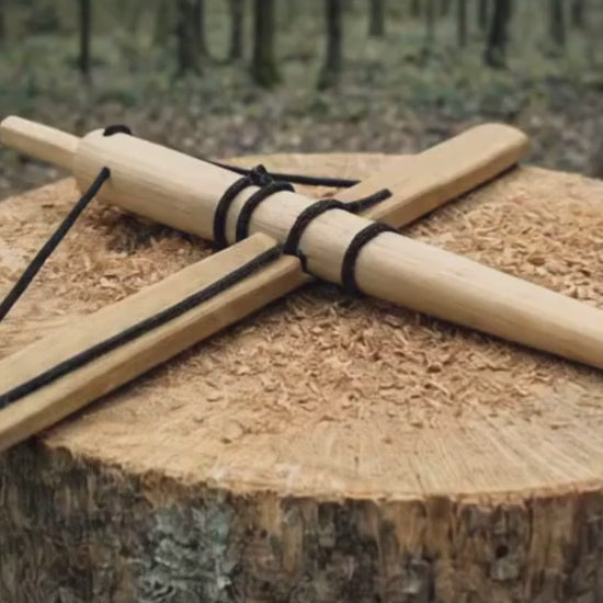 Traditional Bow Drill Fire Starter Kit designed for primitive fire making, bushcraft and outdoor survival.